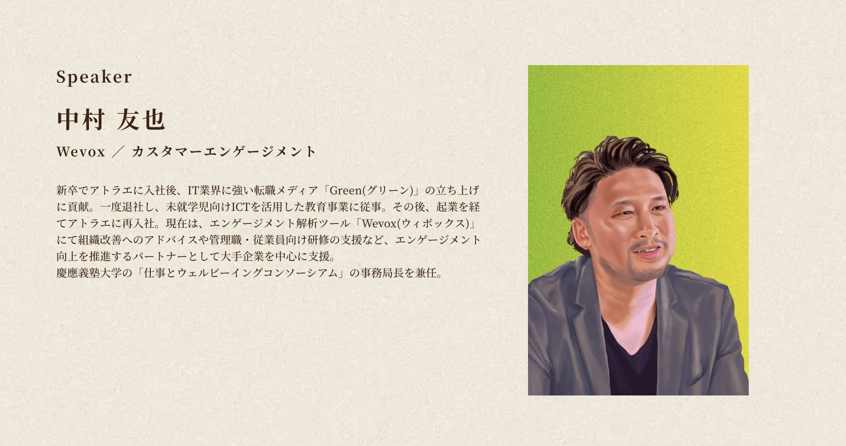 中村 友也(株式会社アトラエ「Wevox」カスタマーエンゲージメント 兼 慶應義塾大学「仕事とウェルビーングコンソーシアム」事務局長)