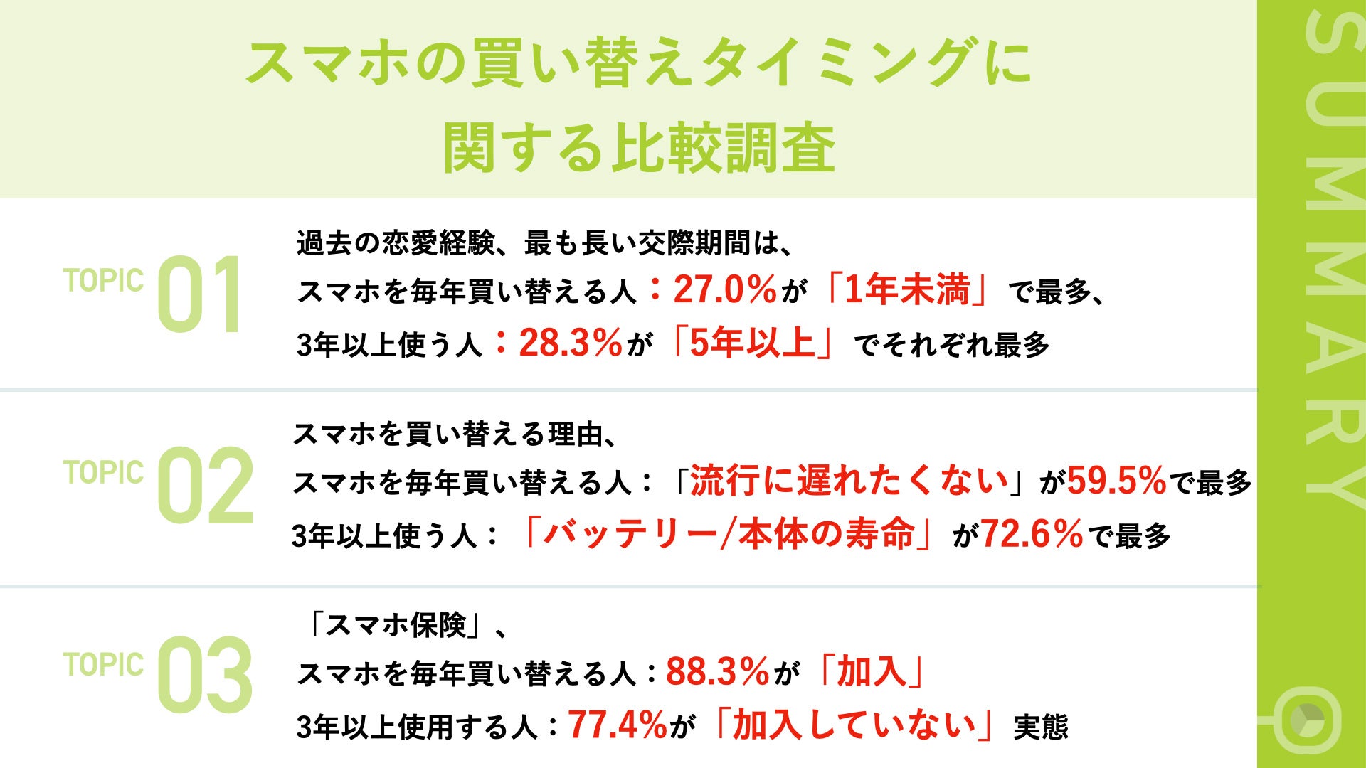 【スマホ、あなたは毎年買い替え派?3年以上使う派?】恋人との「交際期間が短い」など、毎年買い替える人ならではの傾向が明らかに!