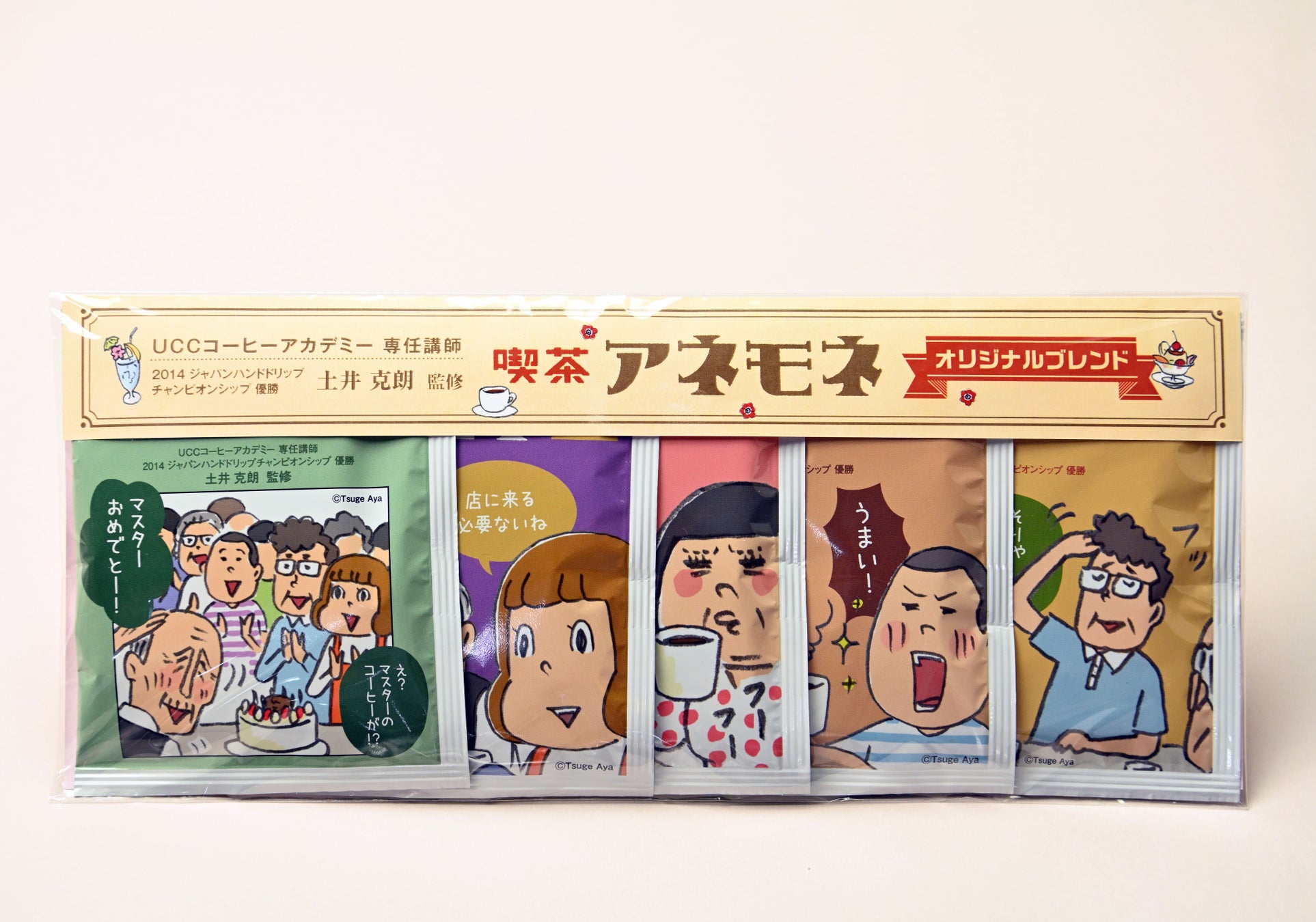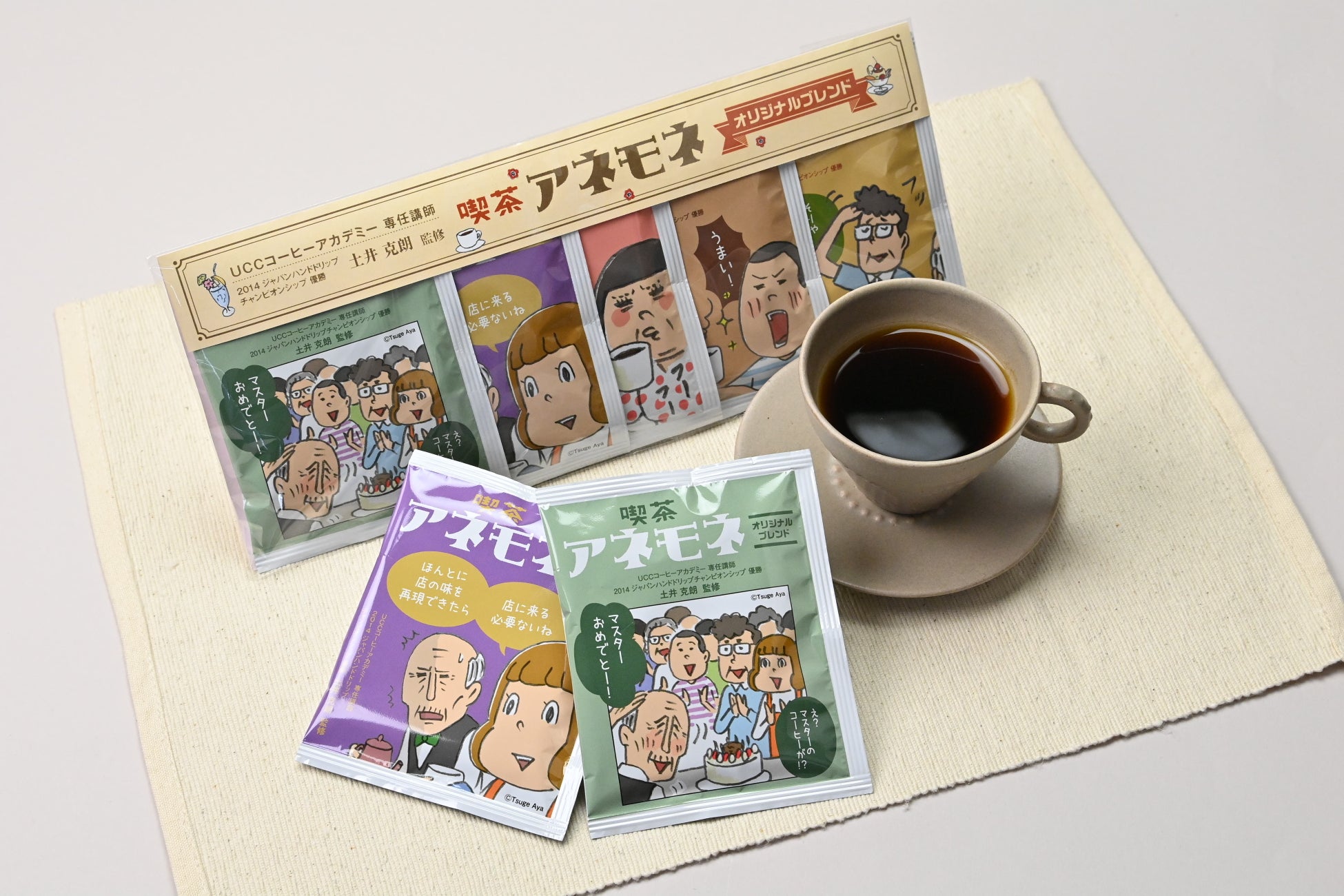 UCCコーヒーアカデミーの専任講師で、ハンドドリップ技術で日本一に輝いた経歴を持つバリスタ・土井克朗氏の監修のもと、作者である柘植文先生にも実際に試飲頂きながら調整を進め、よっちゃんやマスターがいる風景やどこか懐かしい喫茶店が思い浮かぶような、スペシャルな味に仕上がりました。
