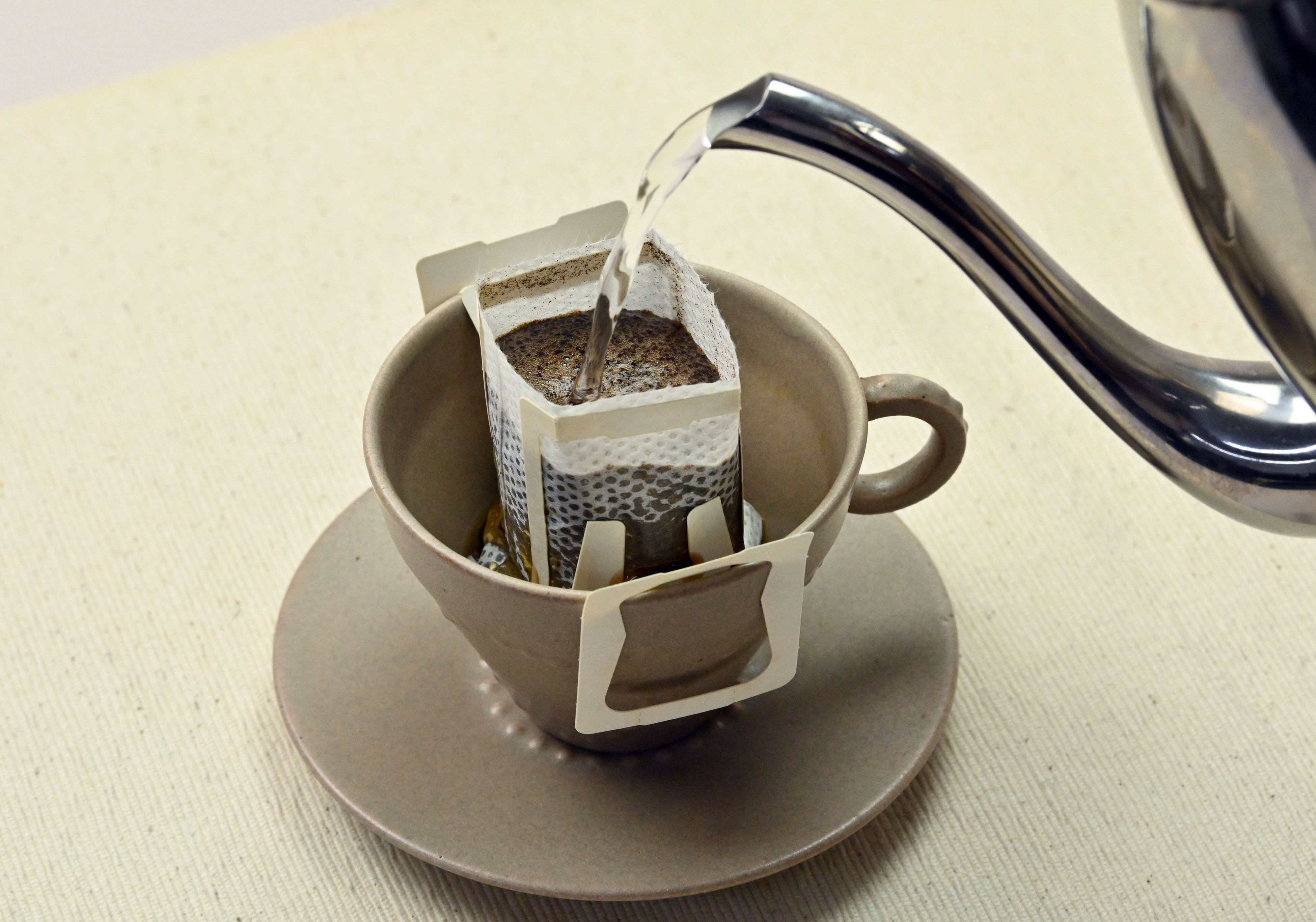 コロンビア、ブラジル産などの豆を使い、グラニュー糖ぐらいの粒度となる挽き方の中細挽きで、
