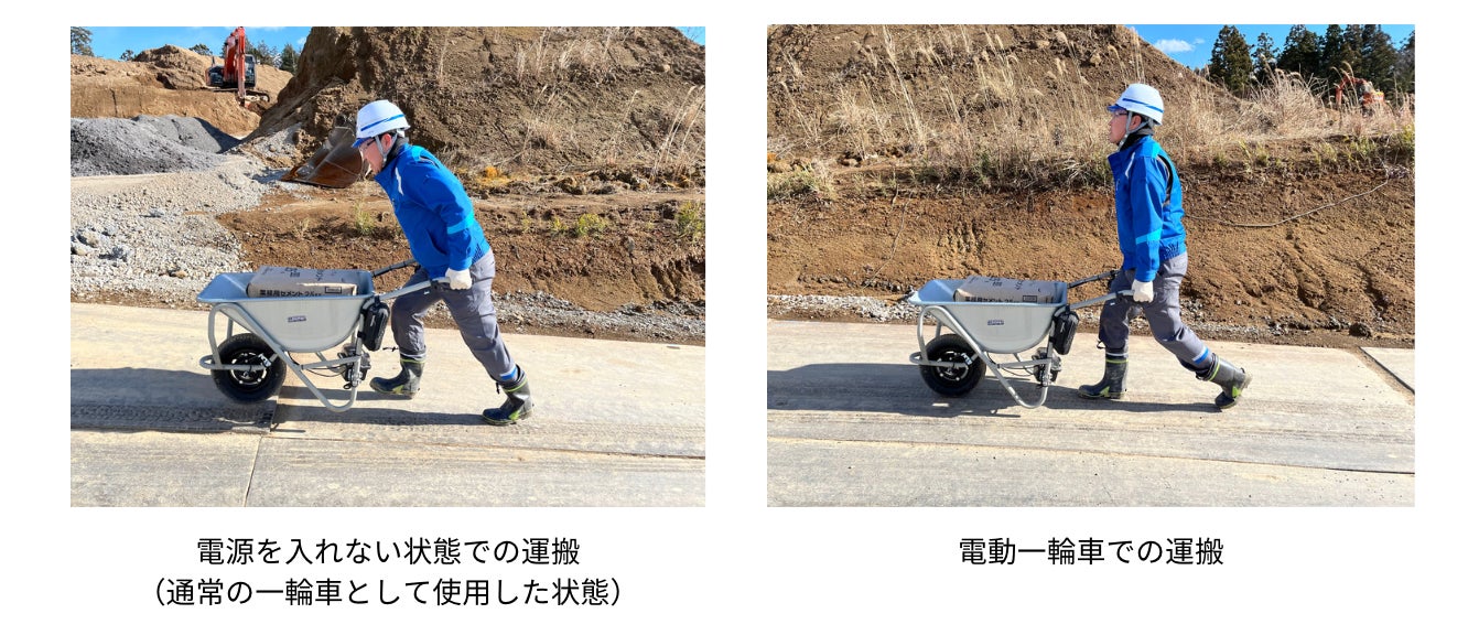 これらの結果から建設現場での当社の電動一輪車の大幅な労力削減、作業効率向上が確認されました。