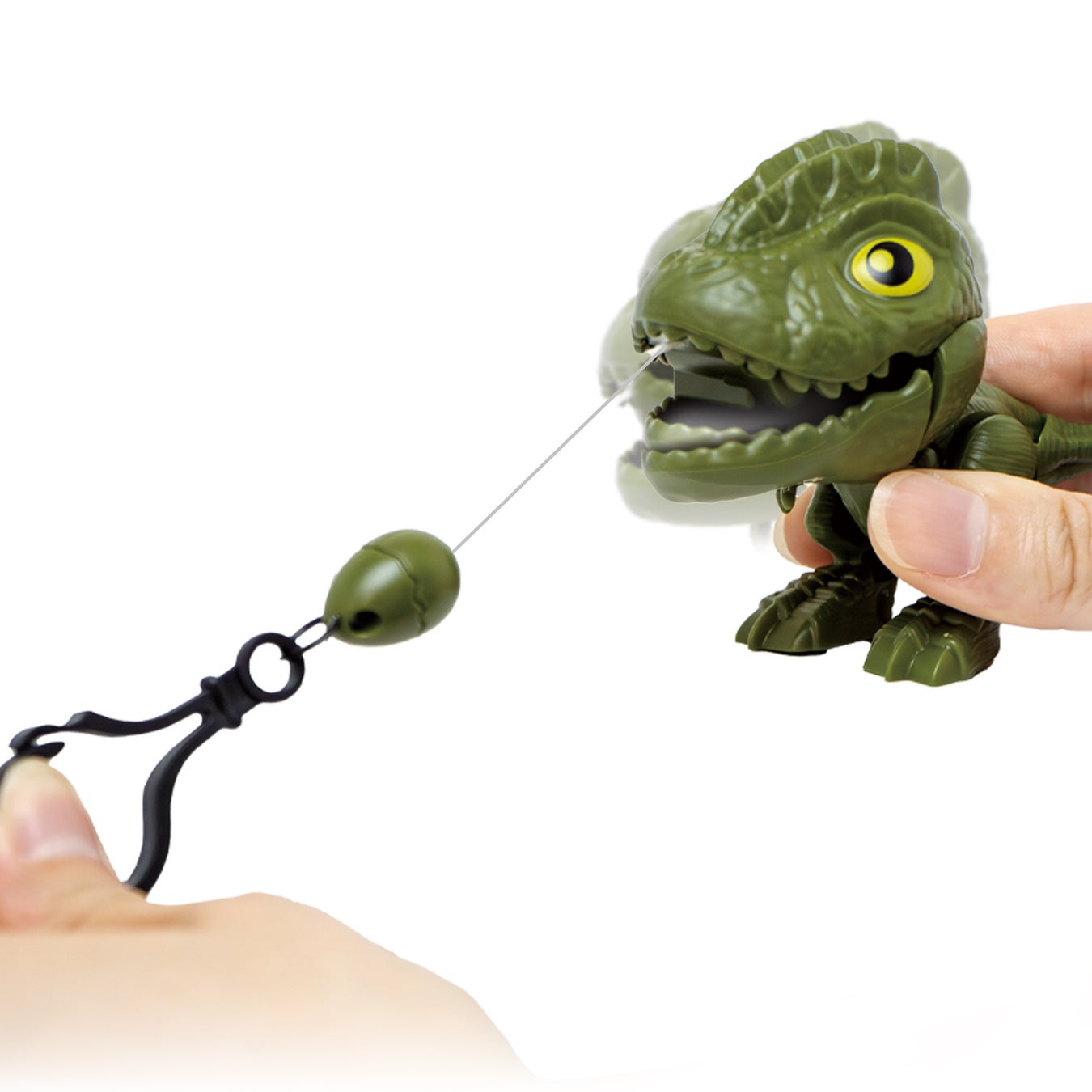 卵キーホルダーを引っ張るとブルブル震えて、ガブガブしながら進むギミックのキーホルダー。