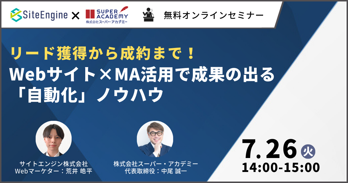 サイトエンジン株式会社 7月26日に株式会社スーパー・アカデミーとの共催オンラインセミナー ” リード獲得から成約まで!Webサイト×MA活用で成果の出る「自動化」ノウハウ”を開催