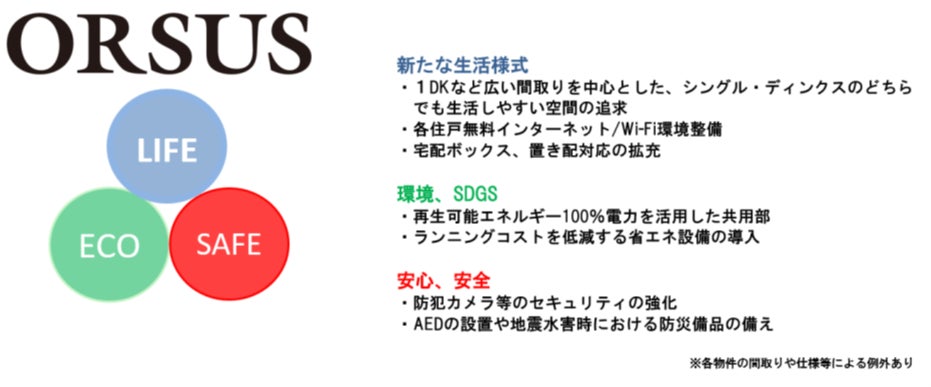本物件は、「ORSUS(オルサス)」シリーズとして、高い環境性能や多様なライフスタイルに対応する住戸プラン、スマートホーム機器の導入等を計画いたしました。今後も当社では、多様化するライフスタイルや社会ニーズに応えられる、高品質な空間を提供してまいります。
