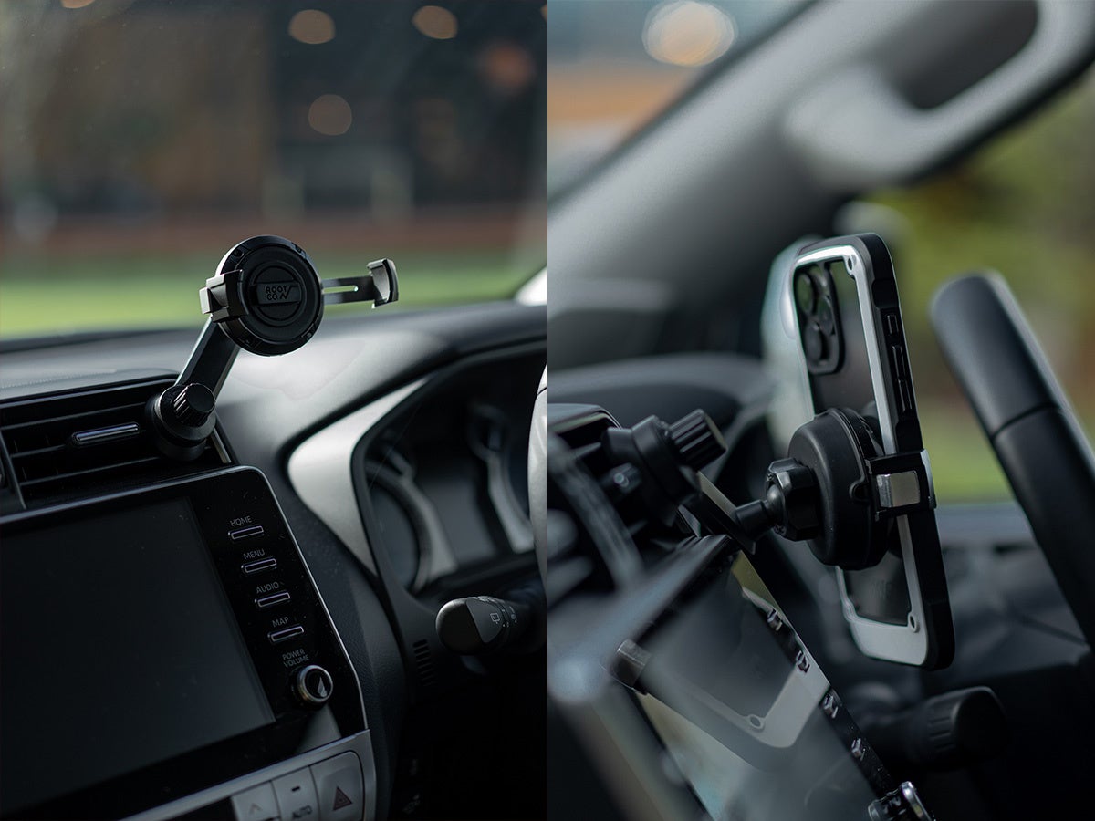 どちらもワンタッチでスマホを車載ホルダーに固定ができる、スムーズ&スマートなカーマウントとなっています。
