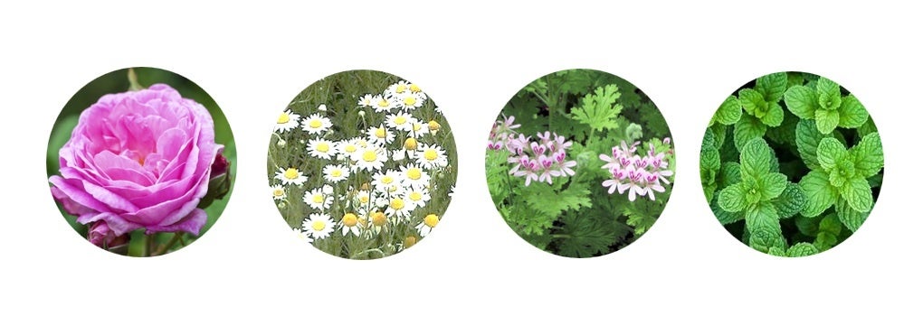 ローズウォーター、カミツレウォーター、ローズゼラニウムウォーター、セイヨウハッカエキスのさわやかなフローラルハーブの香り。