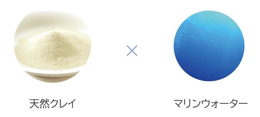天然のクレイが皮脂や毛穴の汚れなどにアプローチして健やかな肌に整えるほか、自然のままの状態からくみ出された海水「マリンウォーター」より、つるんとした肌を目指します。