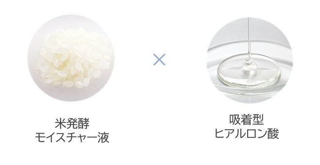 肌のキメ・うるおいを高める独自成分「米発酵モイスチャー液」を配合。また「吸着型ヒアルロン酸」が洗い流したあとも肌に留まり、うるおいのベールで肌をやさしく包み込みます。