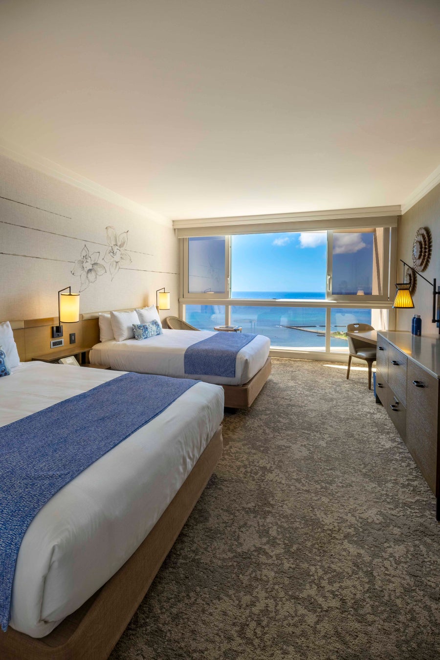 マウナ ケア ビーチ ホテル : 1965年にローレンス S. ロックフェラー氏が開発したハワイ島で初めての総合リゾートで、ハワイ島の美しい自然に溶け込む意匠をこらした建築、館内に点在するハワイ、東南アジア、太平洋の島々の美術品、約60年の歴史で培われたサービスにより多くのリピーターに愛されてきました。 開業60周年に向けて大規模リニューアルを実施中(2025年内に全ての施設改装を完了予定)