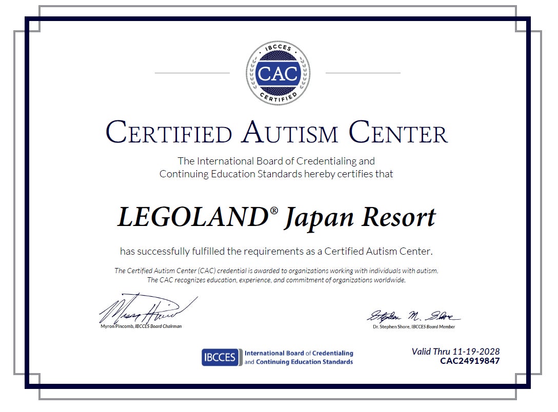レゴランド・ジャパン合同会社(愛知県名古屋市、社長:本多良行)が運営する「レゴランド® ・ジャパン」はこのたび、自閉スペクトラム症を抱えるゲストに対し適切な対応に取り組んでいる施設として、米国のIBCCES※(国際資格認定・生涯教育基準委員会)より「認定自閉症センター™(CAC)」に認定されました。7月1日(月)より本格的な運用を開始いたしますのでお知らせします。本認証を付与されたテーマパークは日本初となります。