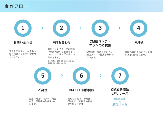 - CMの企画、放映プランの作成、LPの制作プランを無料で提供