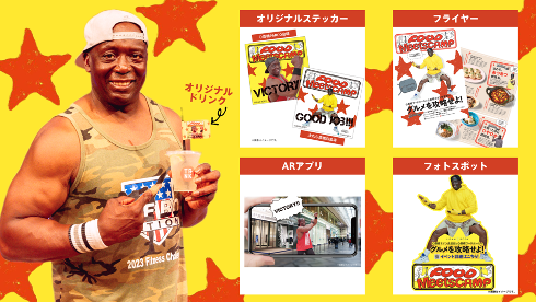 また、「オリジナル入隊ステッカー」が手に入る脂肪燃焼キャンペーンや、LEAN BODYで配信中のビリー隊長のエクササイズ「BOOM BOOM BOXING(ブンブンボクシング)」にちなんだコラボドリンクの販売、ビリー隊長のオリジナルフォトパネルやスマホで楽しめるARなどを展開いたしました。