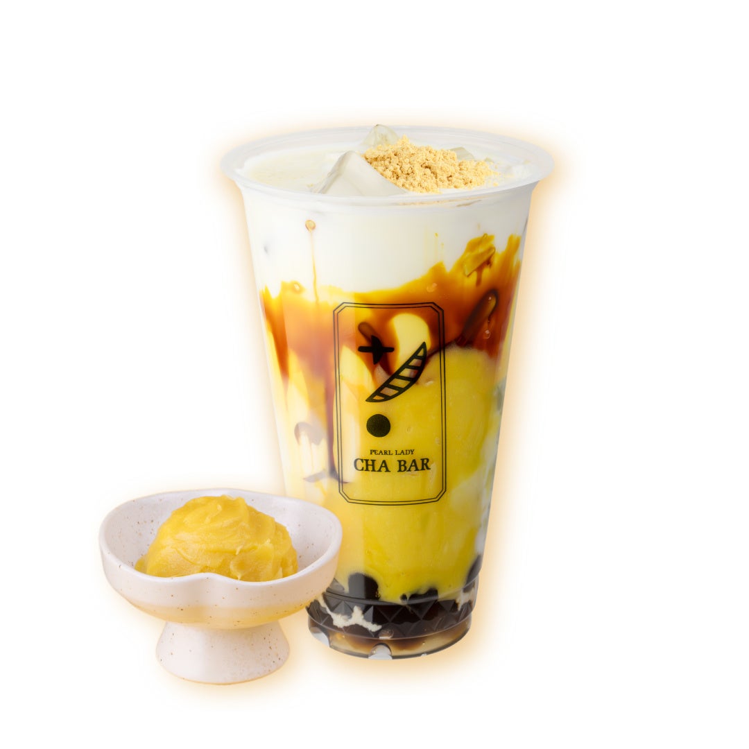 きなこを合わせた、CHABARオリジナルのよもぎシロップを使用。ミルクのまろやかさとおさつペーストがほっとする甘さに仕上げております。