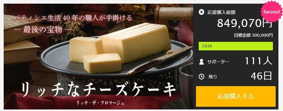 - 公開初日で目標金額達成!パティシエ生活40年の集大成「リッチ・ザ・フロマージュ」