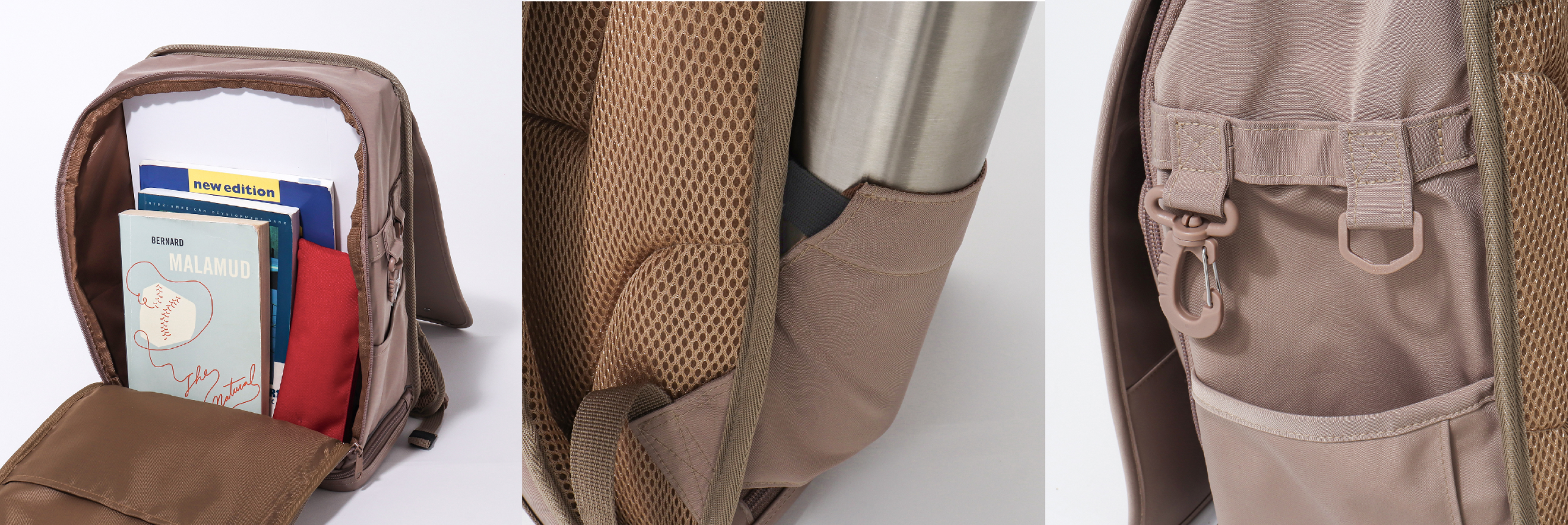 サイドポケットは水筒も入るマチ付きで、荷物の多い小学生に嬉しいこだわりポイントです。