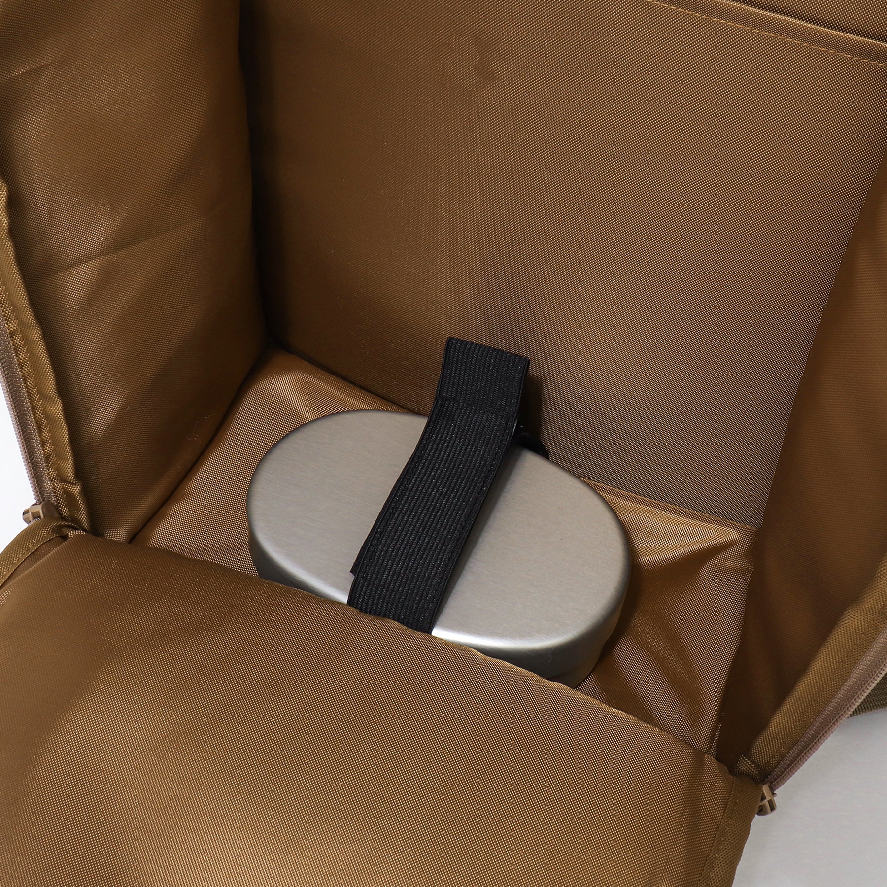 メインポケットには、長さの調整が可能なお弁当バンドが付いており、お弁当箱の大きさが変わっても安定して固定ができます。