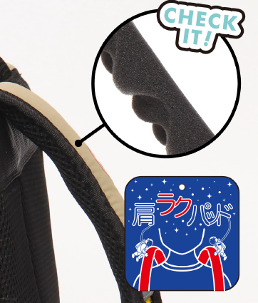凹凸のある厚めのパッドを入れることで、重さが分散され、肩が痛くなりにくい特徴があります。