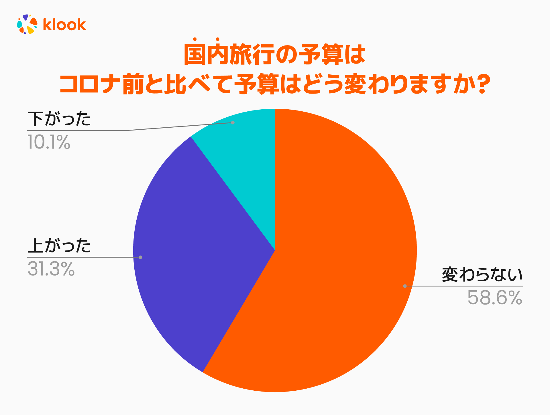 国内旅行の予算はコロナ前と比べて「変わらない」と回答した人は58.5%、「上がった」という人は31.3%、「下がった」という人は10.1%にとどまりました。ボーナスをもらう予定の人はコロナの影響にかかわらず、旅行にはこれまでと変わらないかそれ以上のお金をかける傾向のようです。