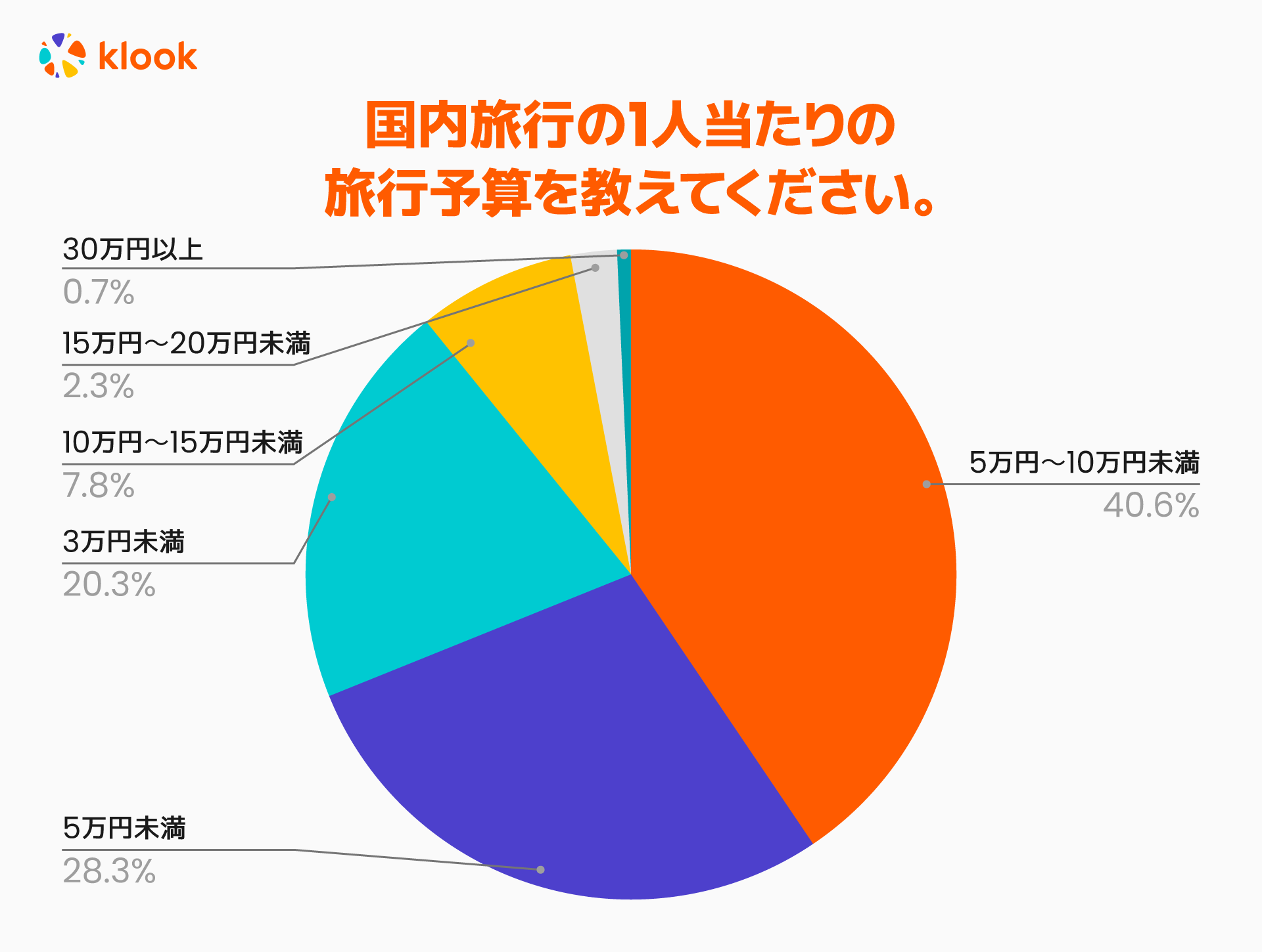 この夏の国内旅行の旅行予算として最も多いのは5万円〜10万円未満の40.6%、その次に多い予算帯は3万円〜5万円未満の28.3%という結果となりました。