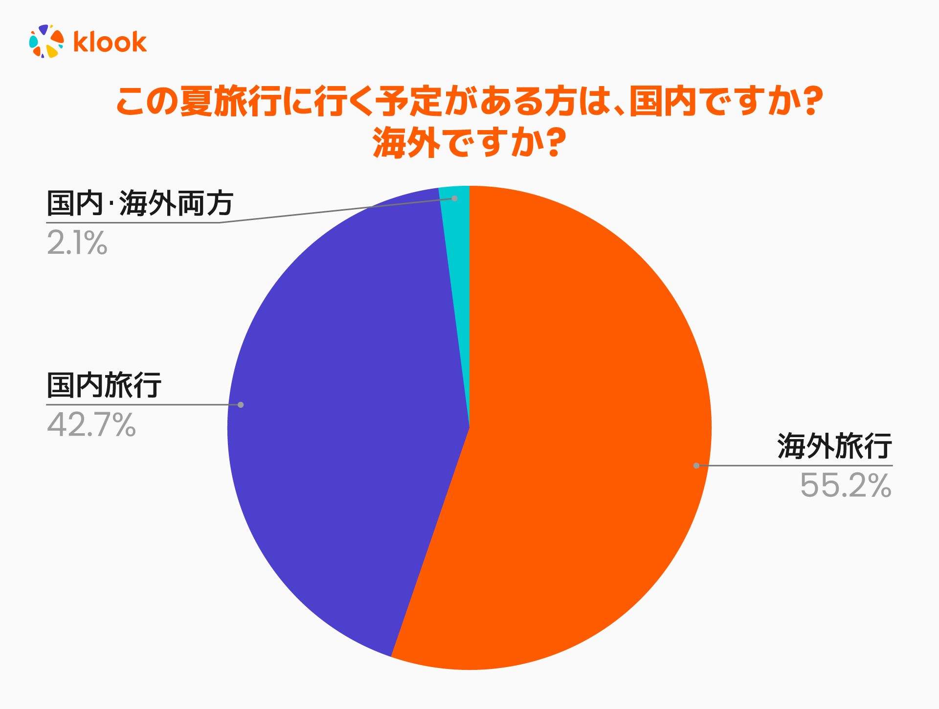 夏のボーナスでこの夏に旅行を予定している人のうち、55.2%は海外、42.7%は国内、2.1%が国内旅行と海外旅行の両方を予定している結果となりました。