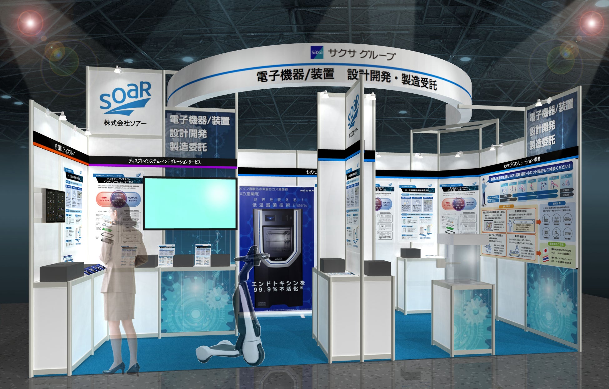 ソアーは、カーエレクトロニクス事業で培った設計・生産力を活かし、高品質なものづくりを強みとして多種多様な機器の開発から量産までを受託してきました。本展示会では、産業/民生/車載分野の受託製品を実機で展示します。さらに、サクサグループ内で対応可能な基板実装/射出成形と、ISO13485の取得により受託製造体制が強化された医療機器製造についてもパネル展示を行います。