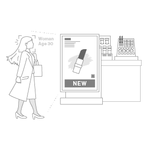 新たなマネタイズポイントになりうる広告プラットフォーム事業として、実店舗における広告メディアの顧客接点デバイスとして活用可能です。