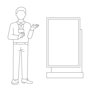 オフィスエントランスの受付として設置。AndroidOS、ブラウザベースで動く受付システムを搭載して受付効率化にも繋がります。スマートなオフィスの印象を与えることが可能です。