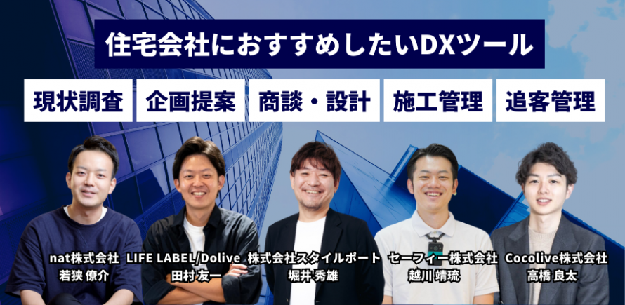 参加対象者: 住宅業界におけるDXに関心のある方、住宅関連事業者の(不動産、ゼネコン、ハウスメーカー、工務店、内装業者、リフォーム工事会社)