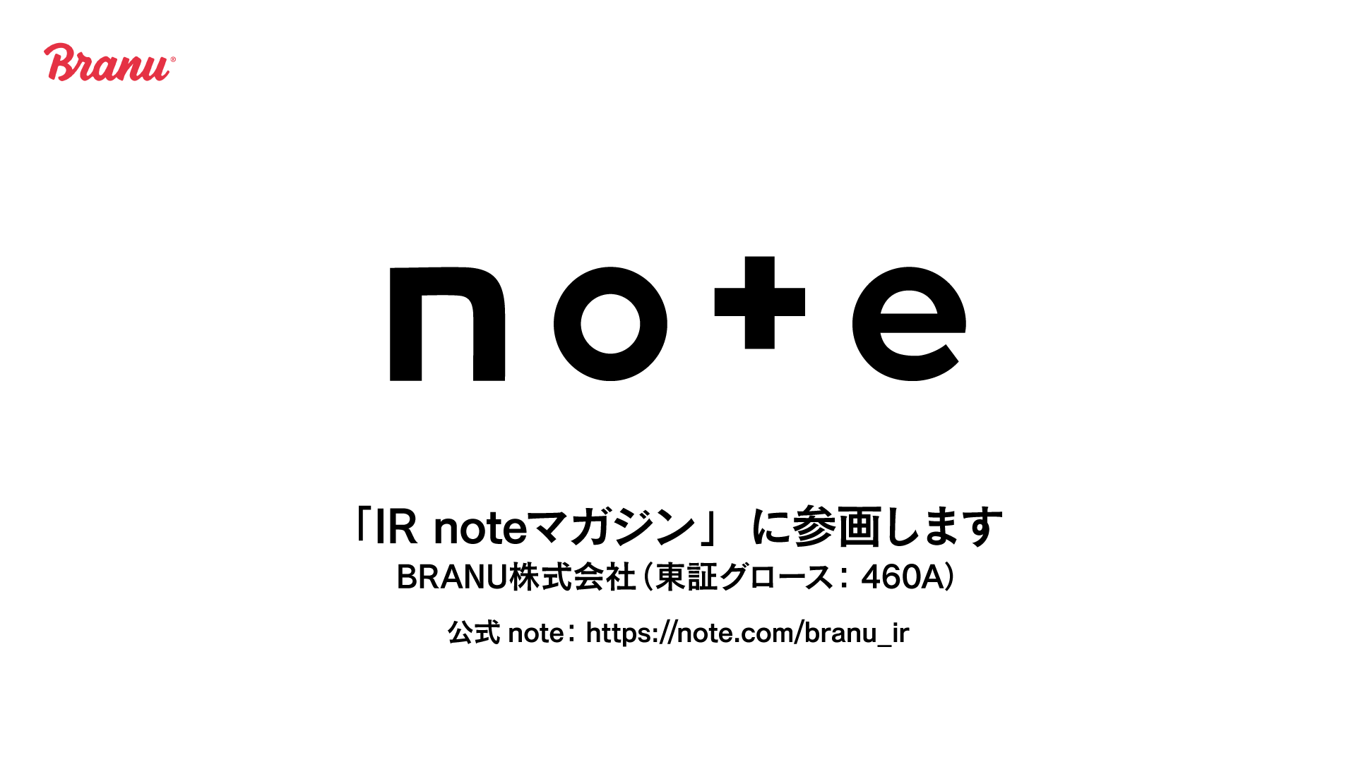 ブラニューは、今後も、「IR noteマガジン」を含めた“noteでIR”の活用等の積極的なIR活動により、投資家のみなさまとのIRコミュニケーションの向上を行ってまいります。