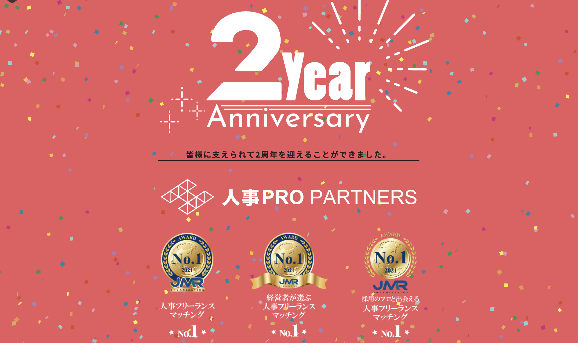 人事フリーランスNO.1の『人事プロパートナーズ』がサービスローンチ2周年を迎えます