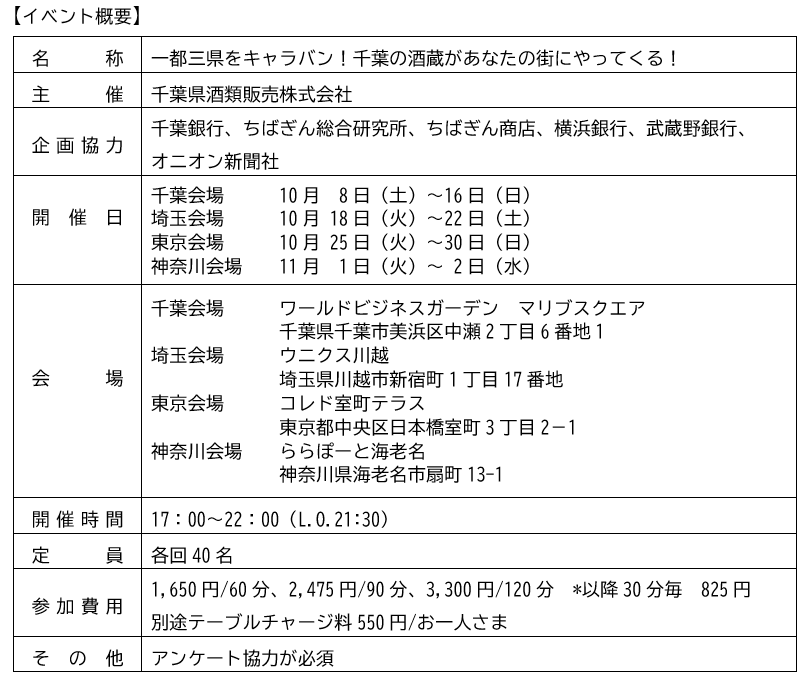 提携行との協力による「Enjoy SAKE !プロジェクト」の支援について~一都三県をキャラバン!千葉の酒蔵があなたの街にやってくる!~
