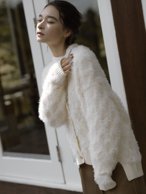 Diamond Check Feather Cardigan 15,400 yen