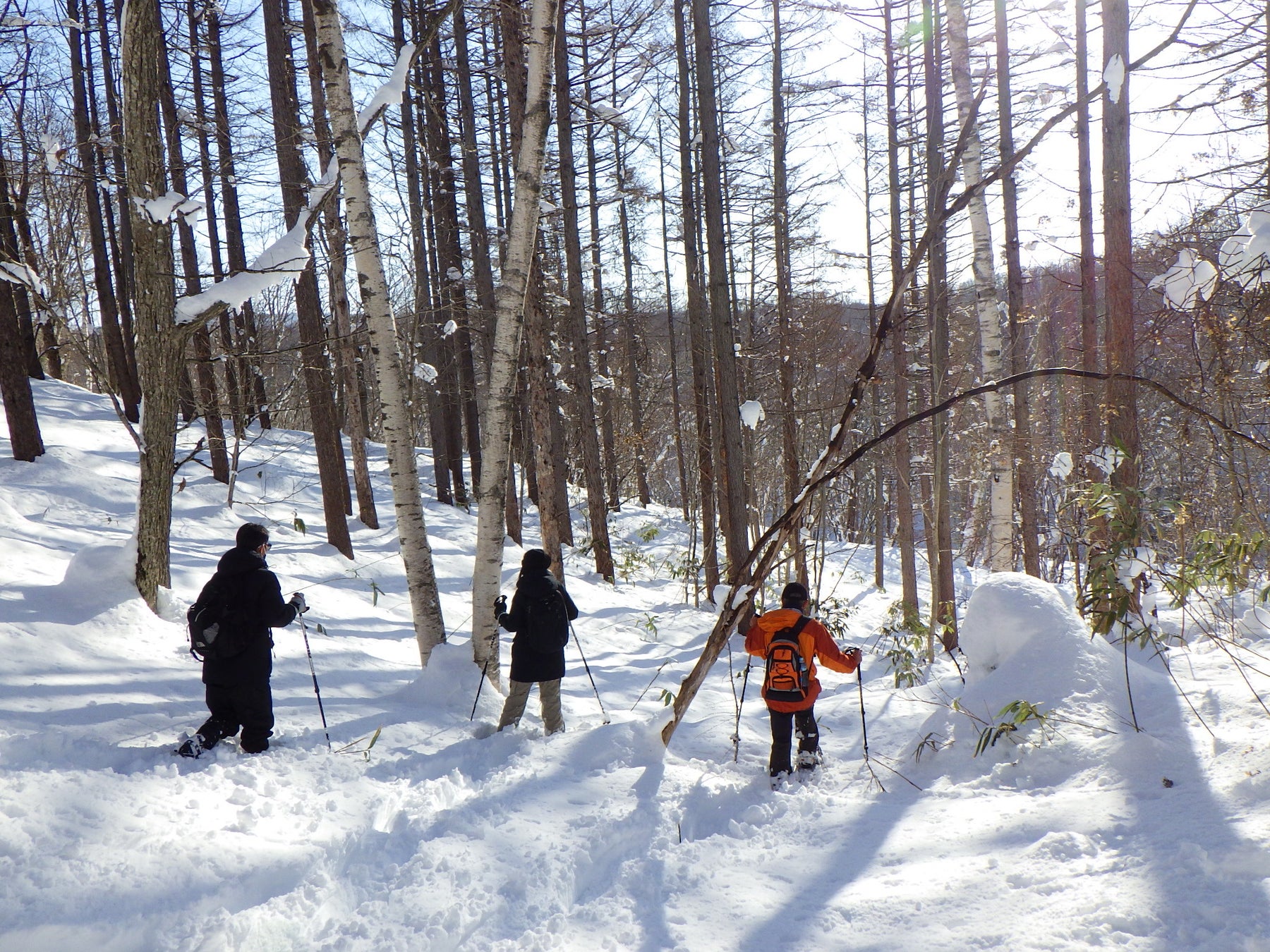 圧雪されていない森の中で雪だるまを作ったり、斜面で尻すべりをしたり自由に遊びことができます。