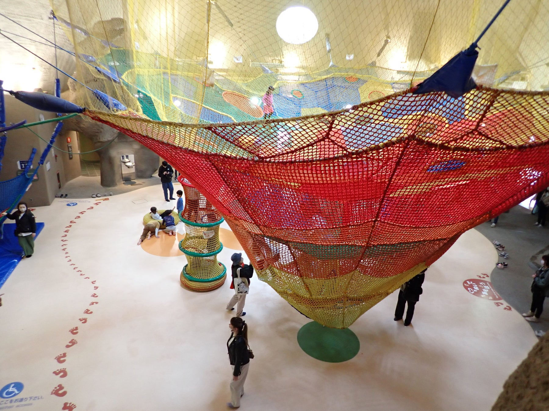 「虹の巣ドーム」では虹色のネットで遊ぶことができます。