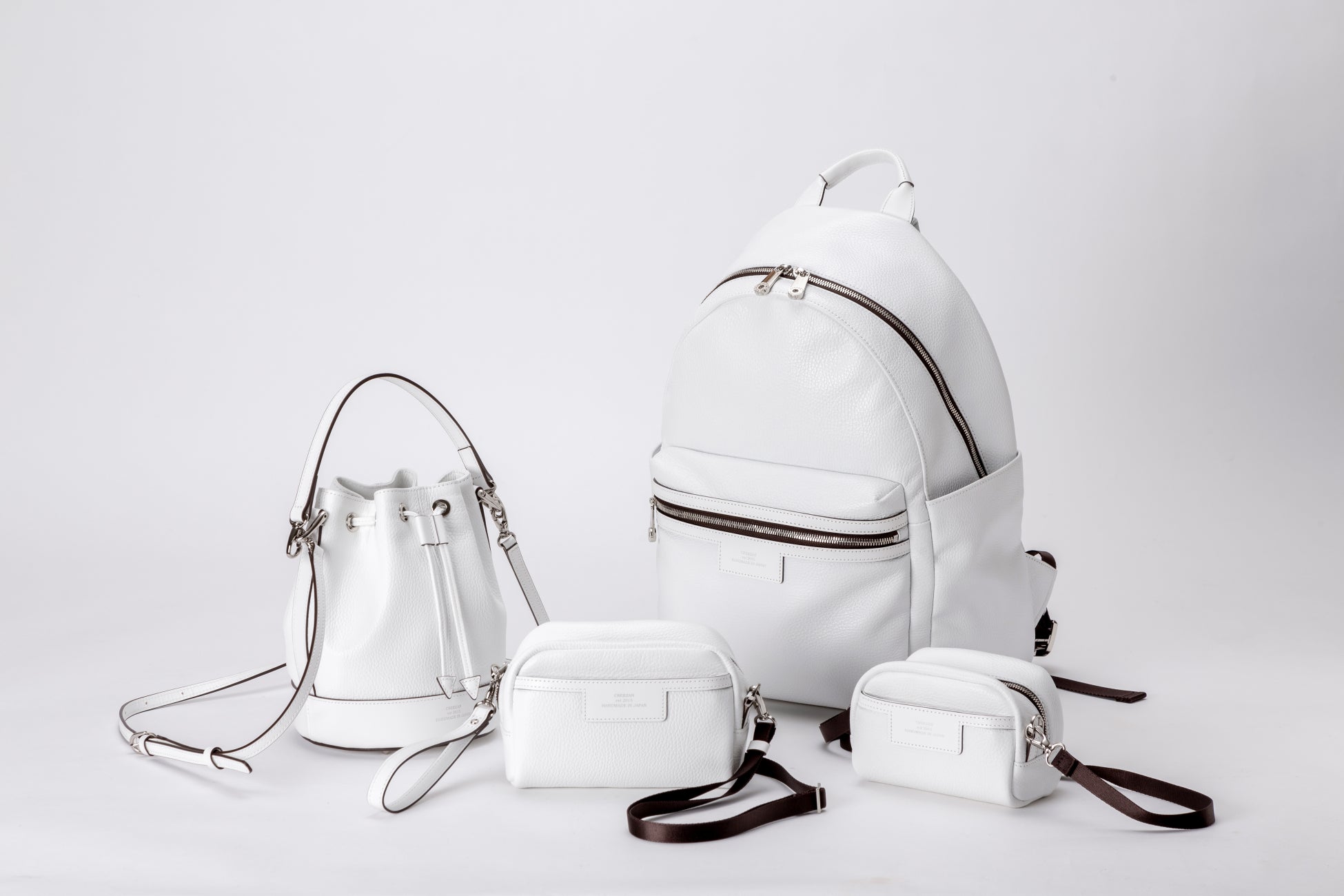ブランド名を刻印したメタルパーツは、丁寧に高い精度で加工された高級感のあるオリジナルパーツ。 ホワイトのレザーと相まってバッグを際立たせます。ファスナーは、YKK社製でファスナーの貴婦人とも言われるEXCELLA(エクセラ:エレメントひとつひとつの全面に入念な磨きをかけた滑らかさが特徴)を使用しています。シュリンクレザーには強撥水加工を施し雨や汚れにも強く丈夫です。