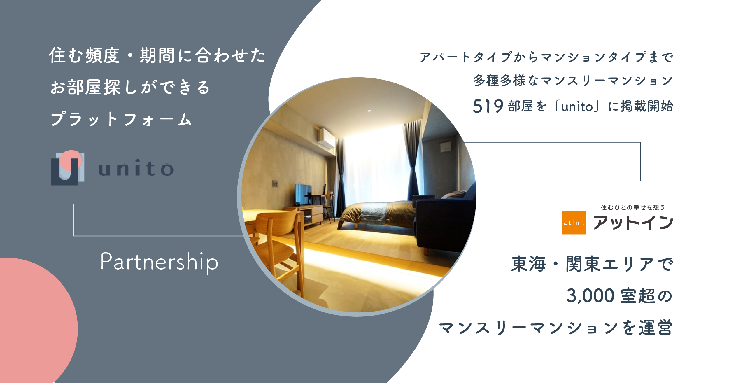 住む頻度・期間に合わせたお部屋探しができるプラットフォーム「unito」とマンスリーマンション業界大手のアットインが業務提携