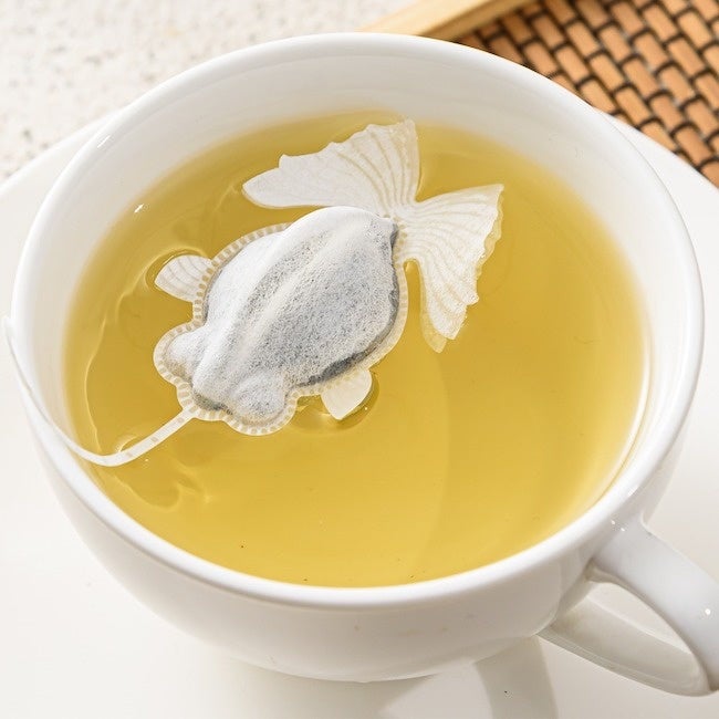 お茶のなかで、立体的な金魚がゆらゆらと泳ぐ姿は、見ているだけで癒されそう。阿里山金萱 、凍頂烏龍、梨山高冷茶、蜜香紅茶のティーバッグが各3個入っています。