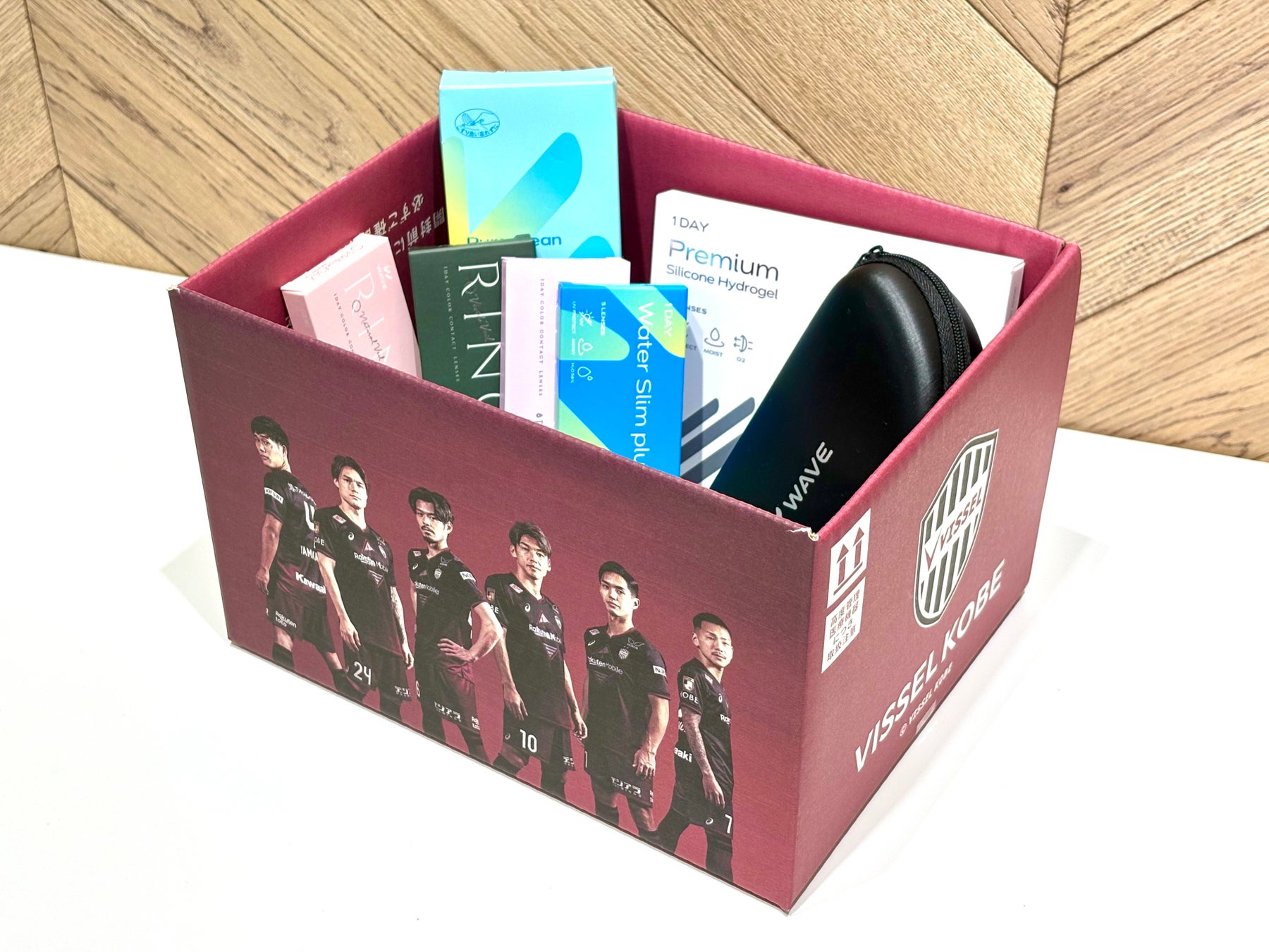 ヴィッセル神戸の他、レンズアップルがスポンサードするB.LEAGUE所属のプロバスケットボールチーム「千葉ジェッツ」、eスポーツチーム「Rush Gaming」らとコラボレーションした特別配送ボックスも順次発送予定です。
