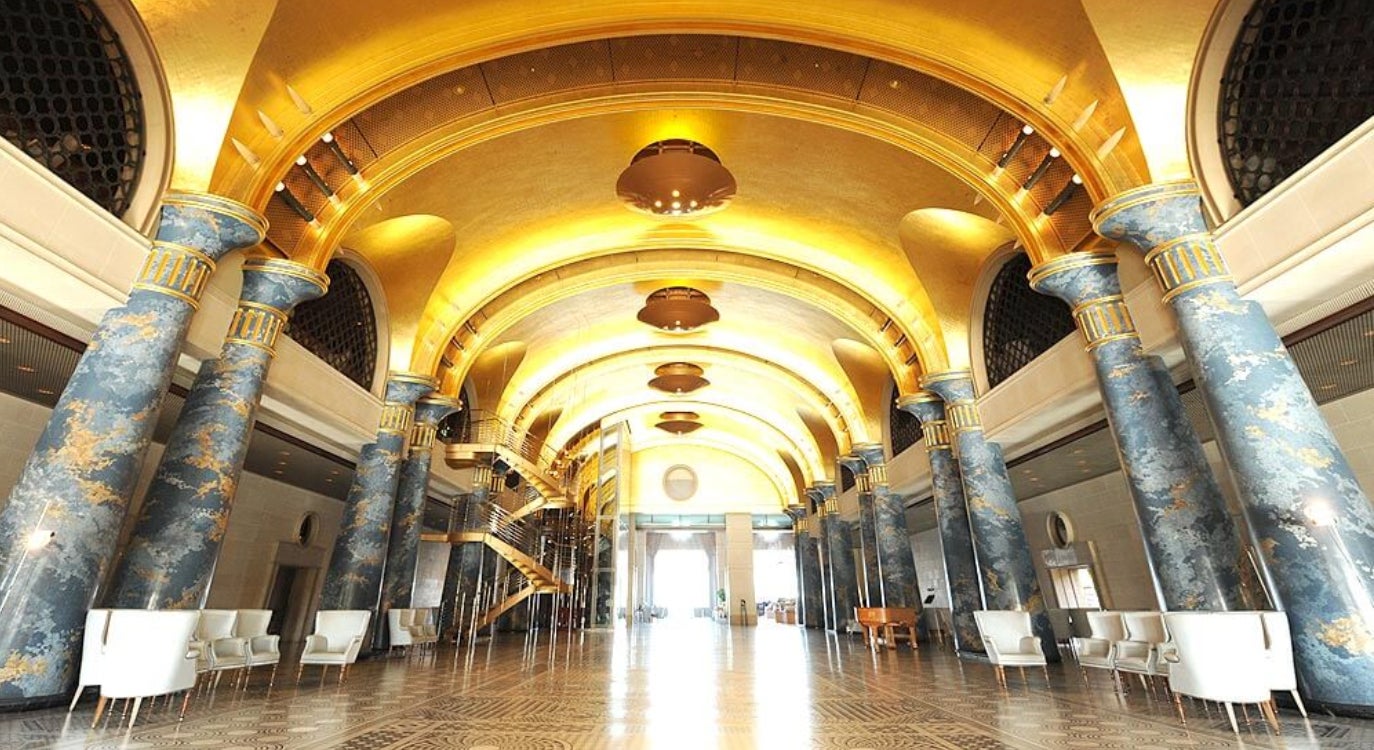 私共のホテル最上級の客室は、天井高約4mの視界の抜けに、モダンでシックな家具と窓一面から心地よい朝日が差し込むお部屋です。
