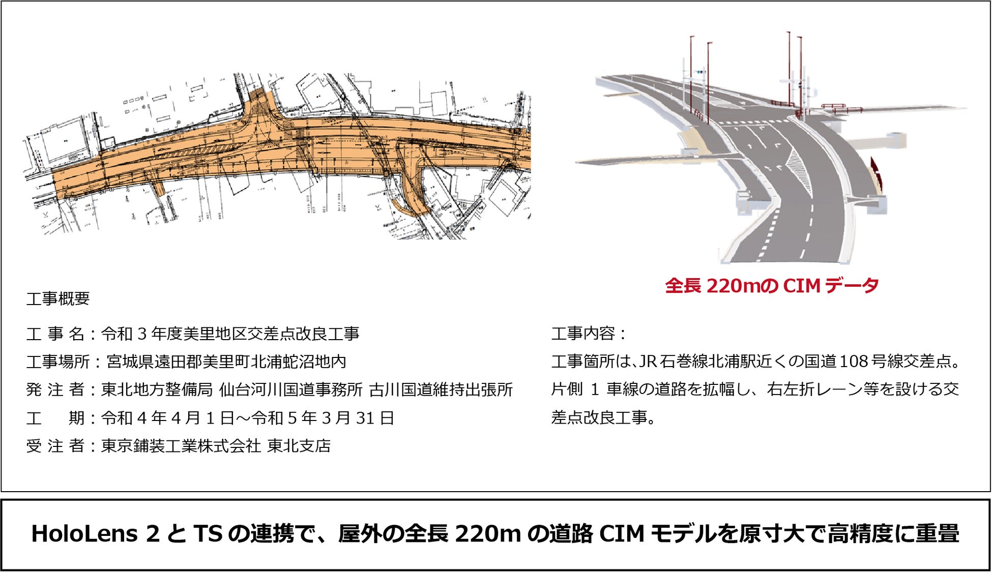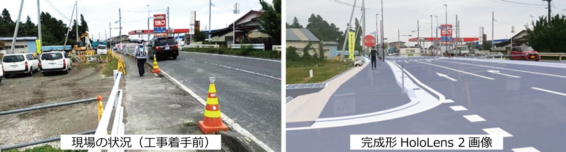 このたび公開したMRシステムは、東京鋪装工業株式会社がDX推進を目指して昨年10月頃より現場に導入した仕組みです。現場は宮城県遠田郡美里町内の交差点の拡張工事です。