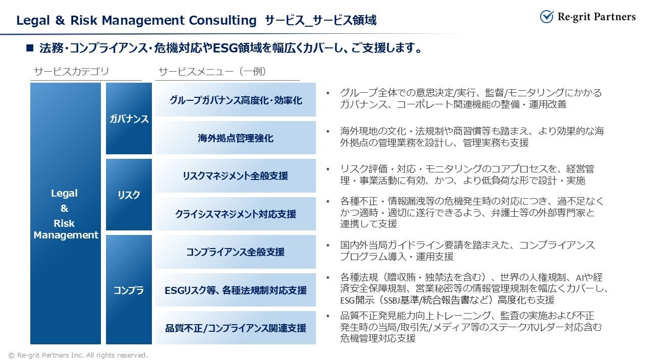 法務コンプライアンス機能強化・規制対応 – Re-grit Partners