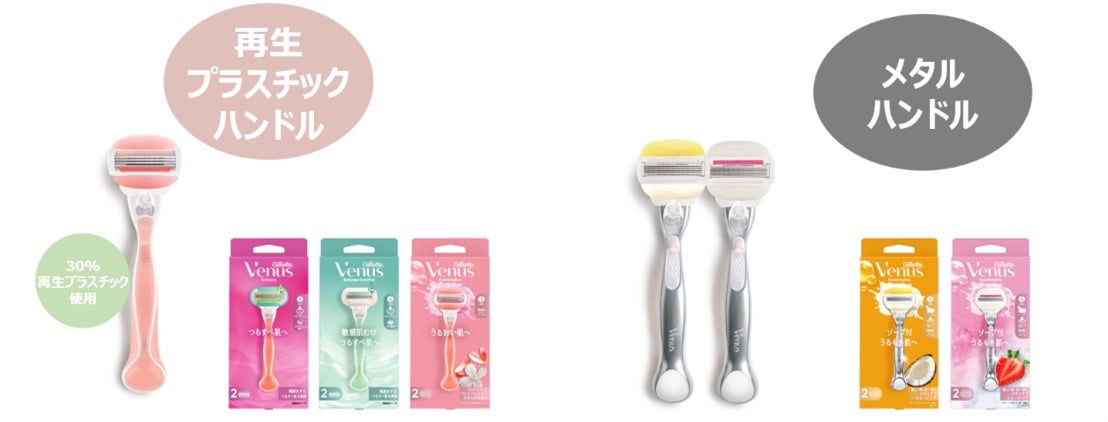 再生プラスチック使用ハンドル:ヴィーナスつるすべ肌/ヴィーナス敏感肌むけ/ヴィーナスうるおい肌ホワイトティーの香り メタルハンドル:ヴィーナスうるもち肌ココナッツの香り/ヴィーナスうるもち肌イチゴ畑の香り