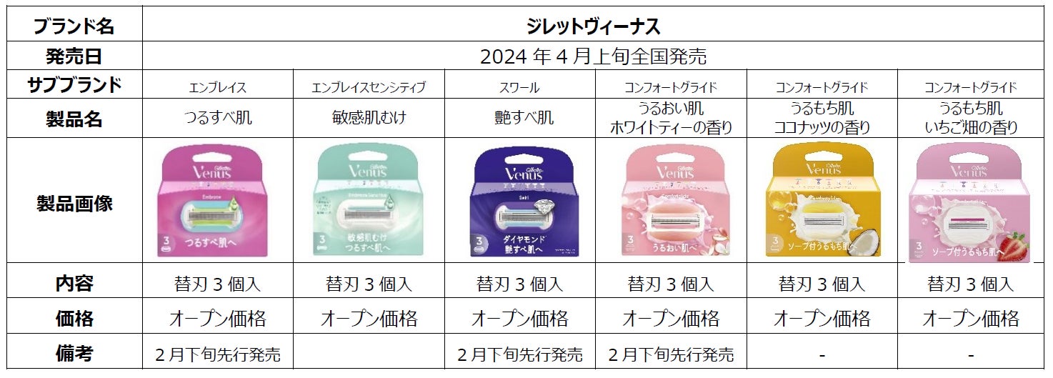 女性用カミソリ『ジレットヴィーナス』が日本市場参入以来初となる、大型リニューアル!女神のひとなでで、晴れすべ肌へ!2024年2月下旬よりECサイト/一部店頭にて先行発売、4月上旬より全国で発売
