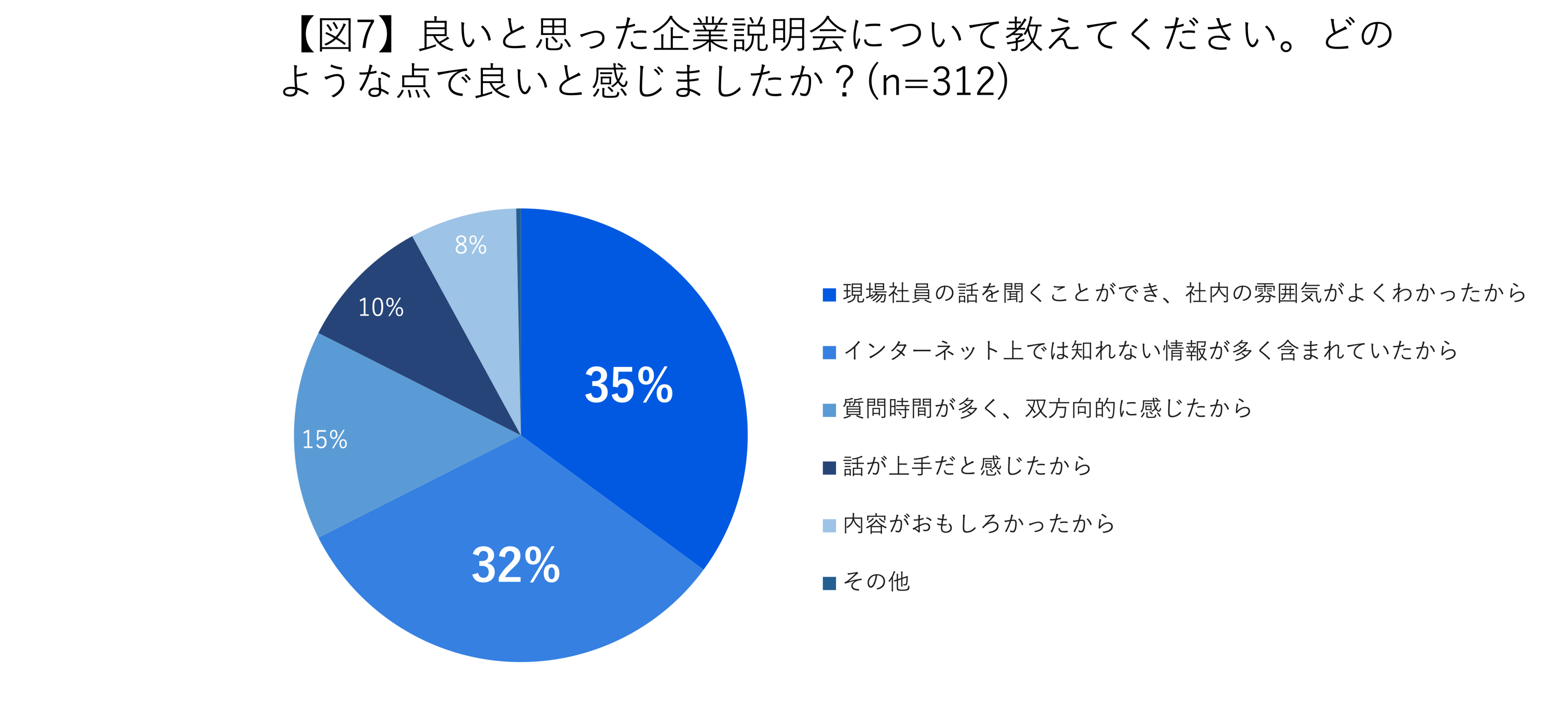 7. 良いと感じた企業説明会は、「現場社員の話を聞くことができ、社内の雰囲気がよくわかった」「インターネット上で知ることができない情報が多く含まれていた」ことが評価ポイントに。