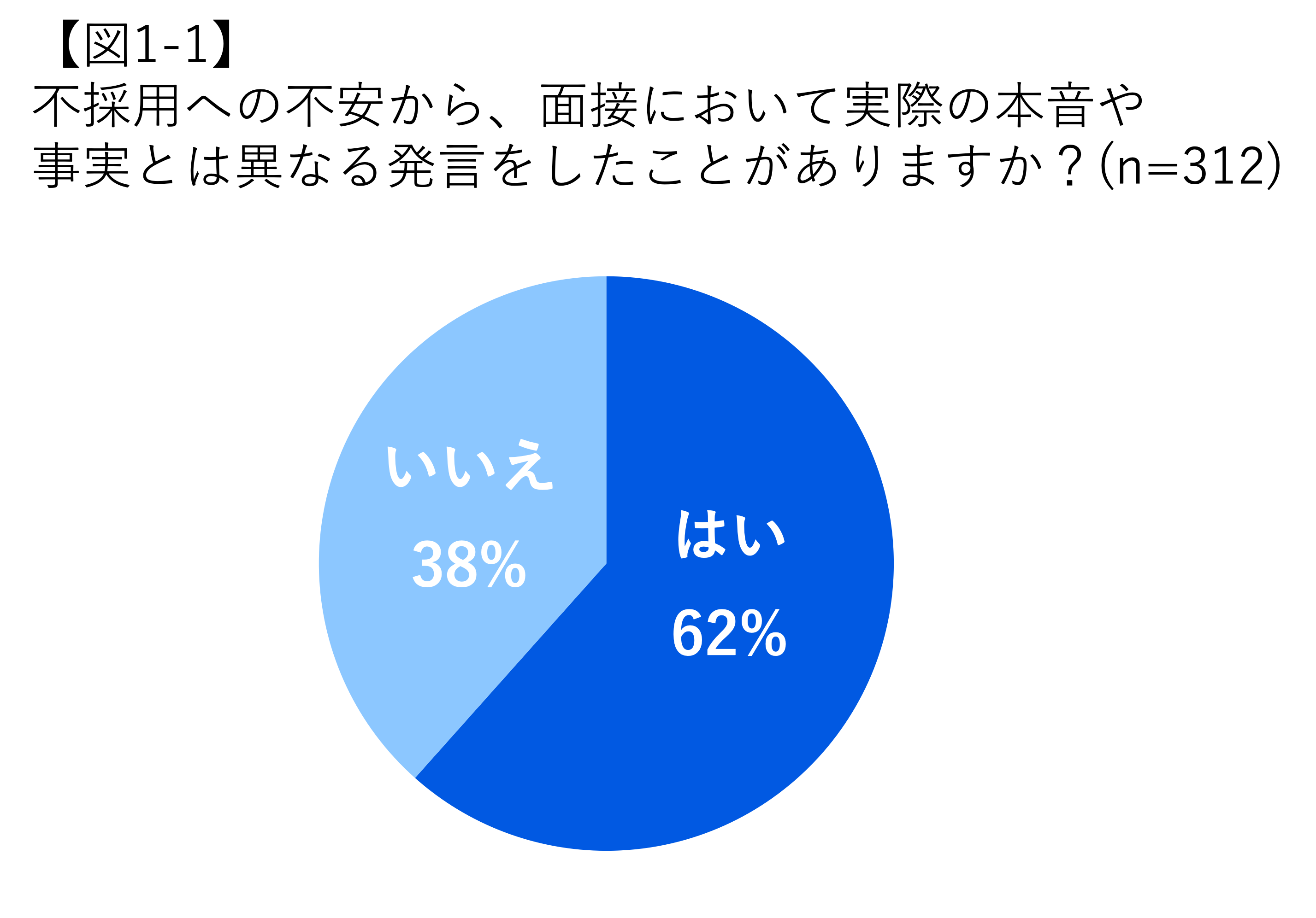 「不採用への不安から、面接において実際の本音や事実と異なる発言をしたことがある」と回答した学生は全体の62%にのぼりました。学生は、企業との対話の場であるはずの面接で、本音ではなく、企業が求める回答をしてしまうようです。