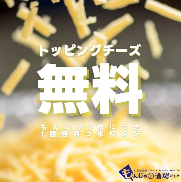 席料、お通しなしで、生ビールやハイボールなどのドリンクも全品299円(329円税込)で提供しています。また、もんじゃだしやではもんじゃ1枚につきチーズトッピングが1回無料で頼めることも大きな魅力です。