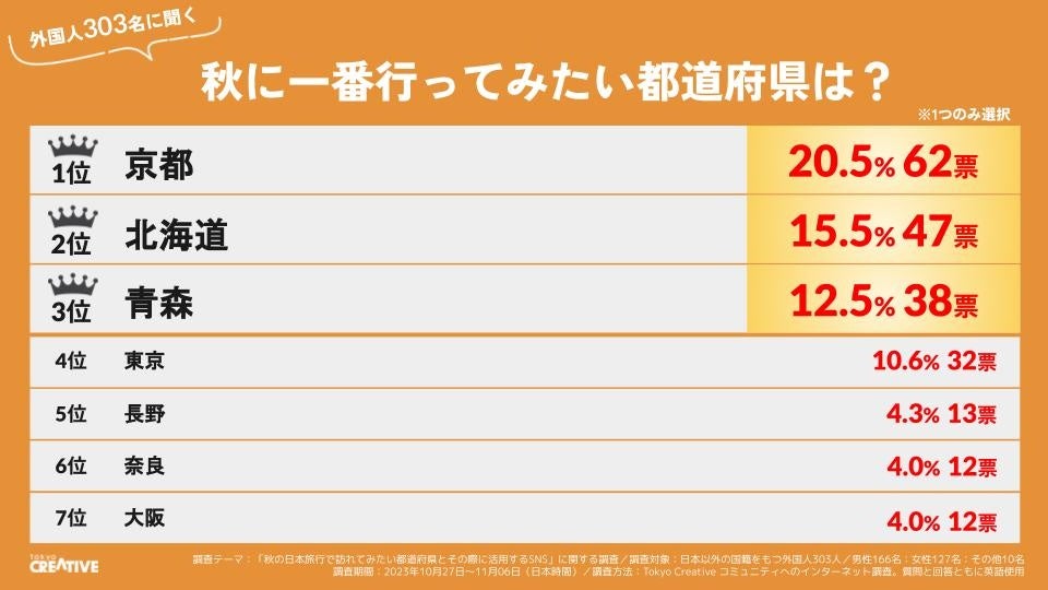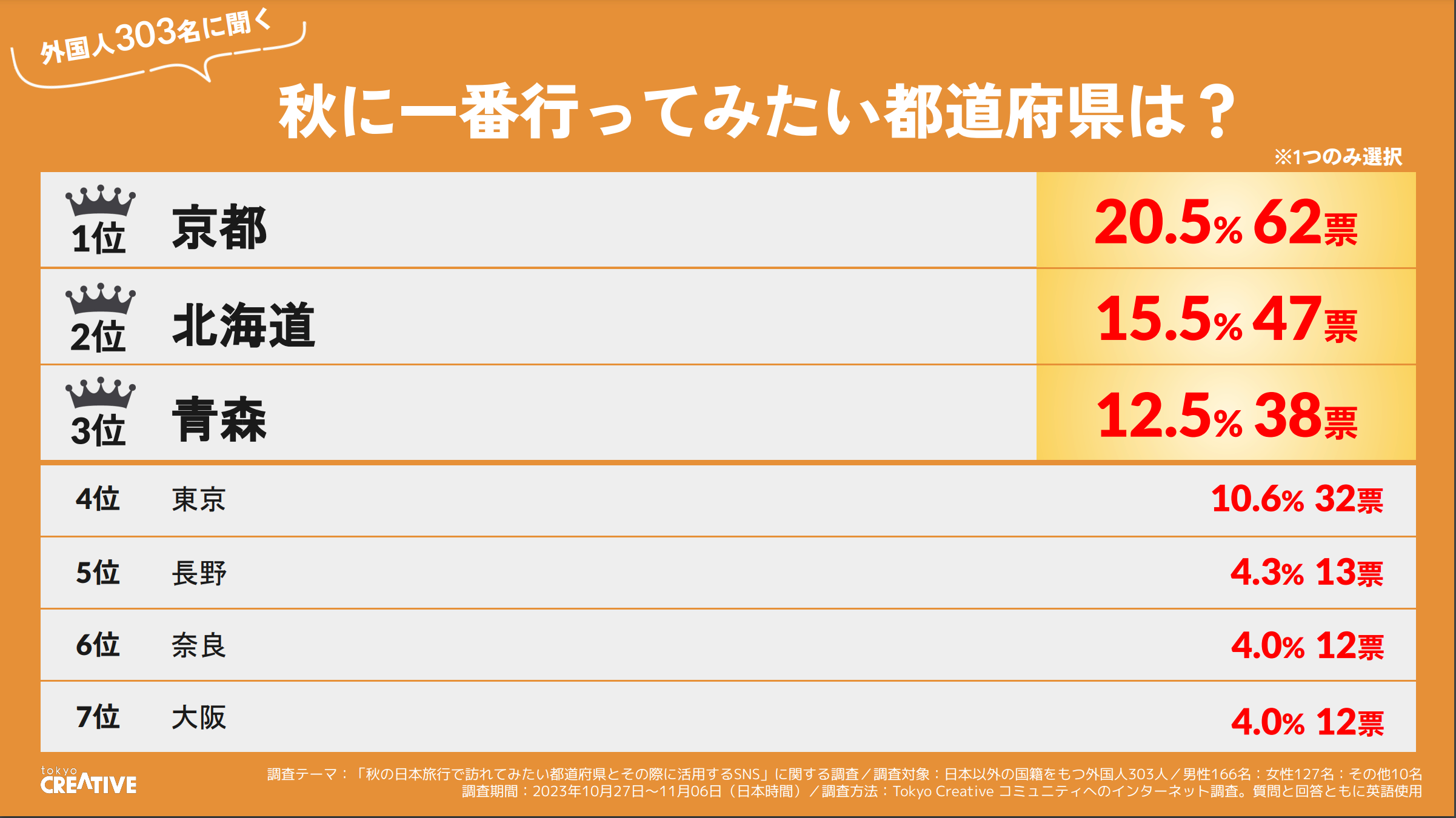 秋の日本旅行で訪れてみたい都道府県ランキング!外国人303人への調査結果発表