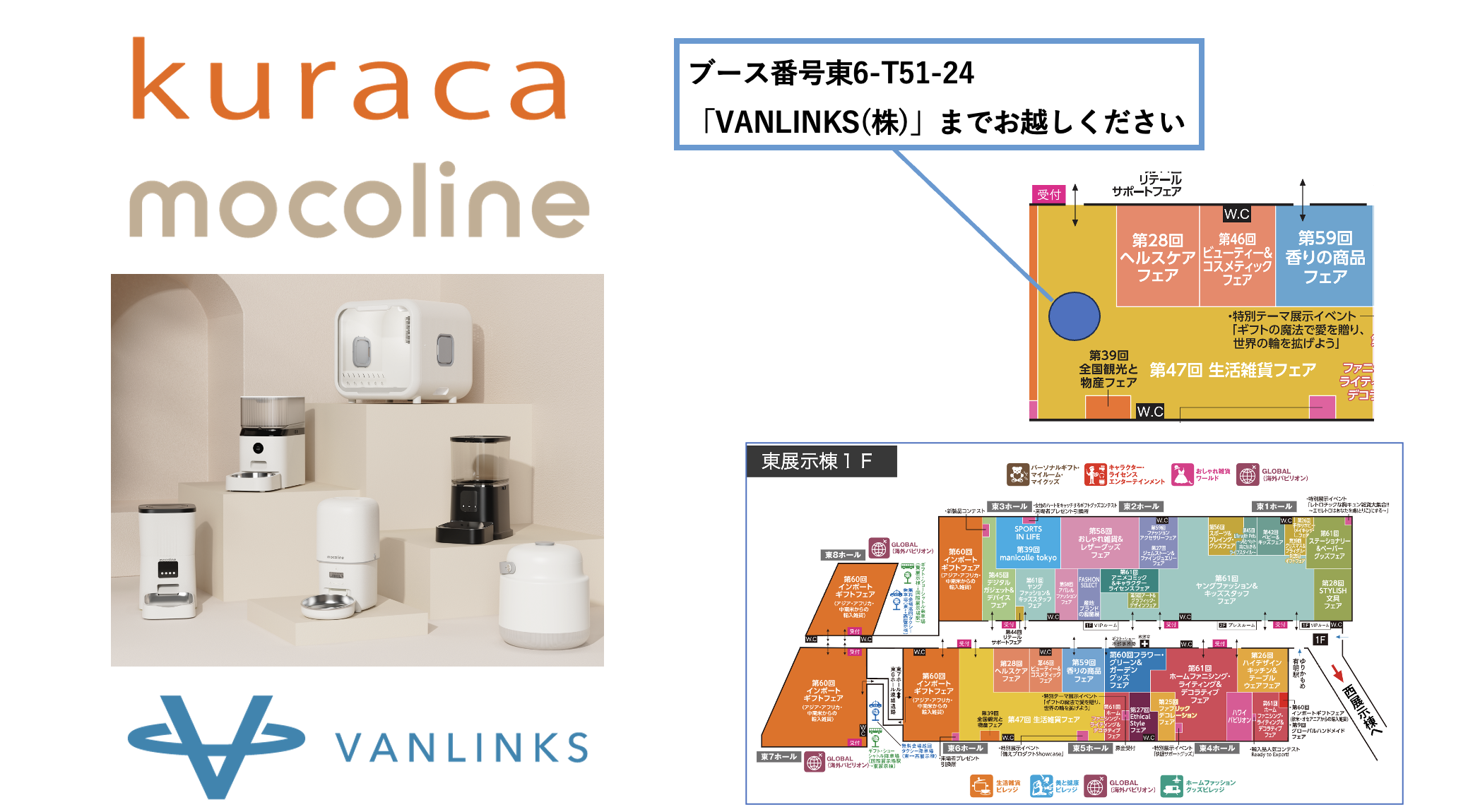 VANLINKS株式会社は、パーソナルギフトと生活雑貨の国際見本市「第96回東京インターナショナルギフト・ショー 秋2023」へ初出展し、IoT家電ブランド「VANLINKS」と生活家電「kuraca」、大人気ペット家電「mocoline」の新商品をお披露目します。