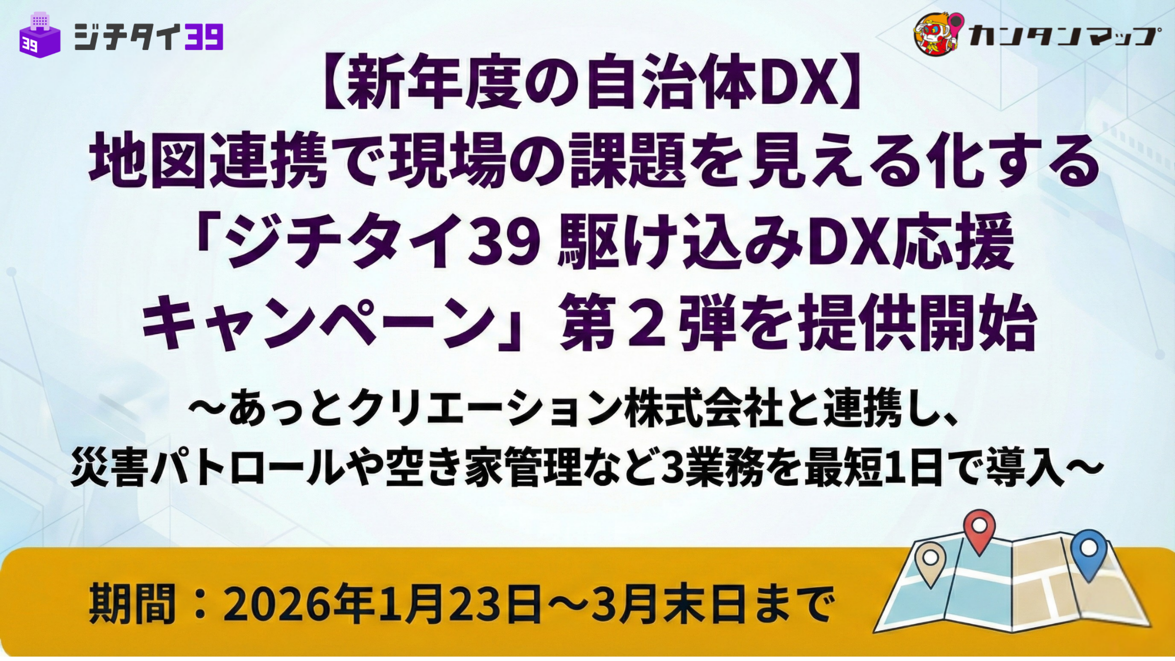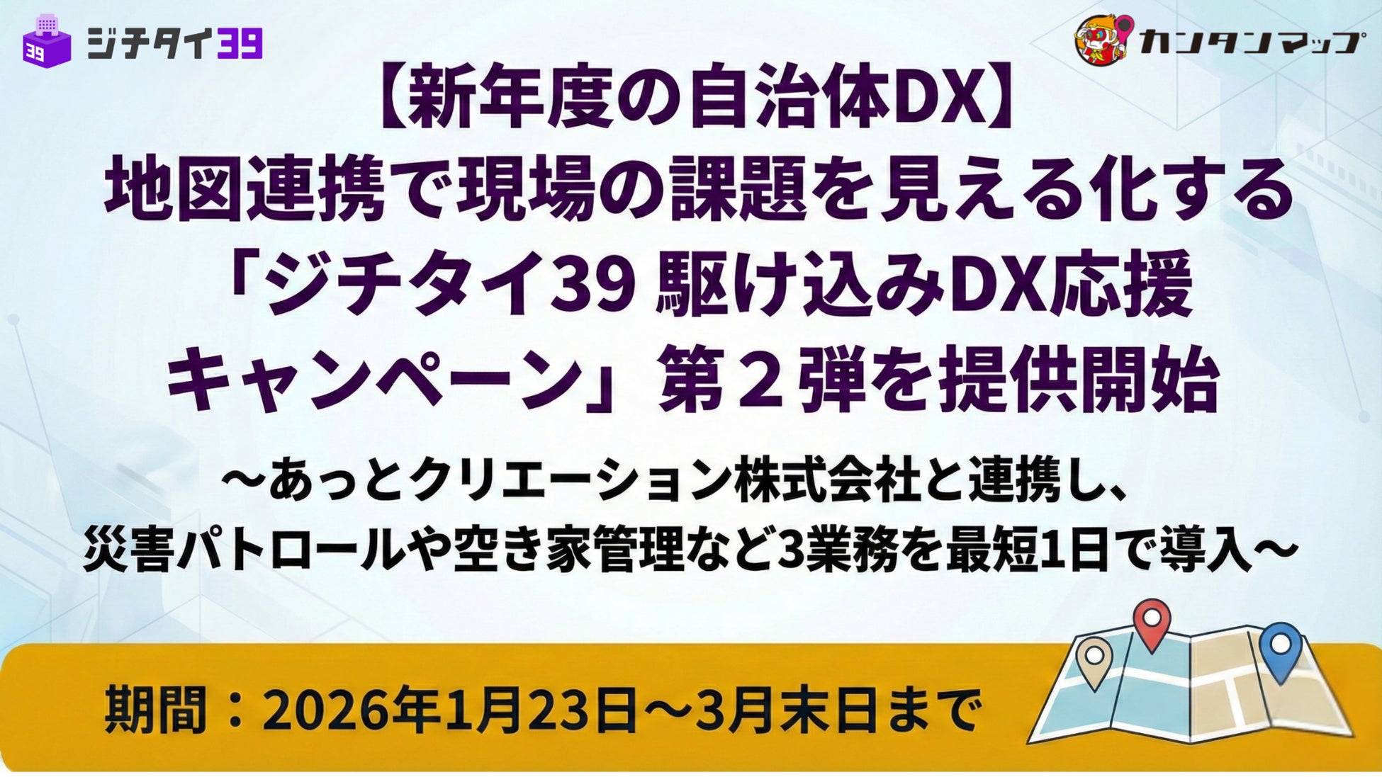 【新年度の自治体DX】地図連携で現場の課題を見える化する「ジチタイ39 駆け込みDX応援キャンペーン」第2弾を提供開始