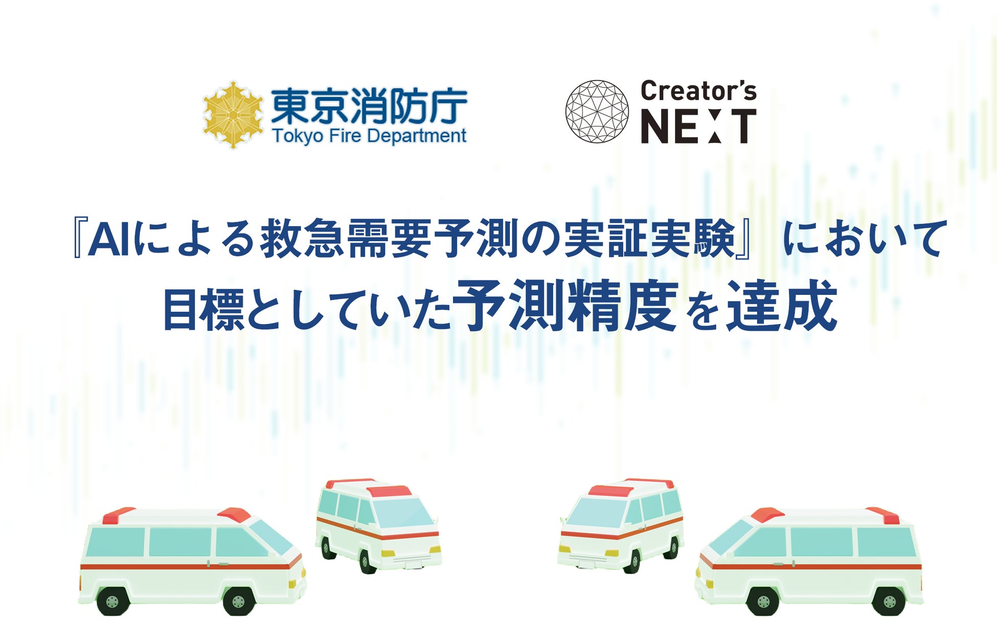東京消防庁と株式会社クリエイターズネクストが協働で行った『AIによる救急需要予測の実証実験』において目標としていた予測精度を達成しました